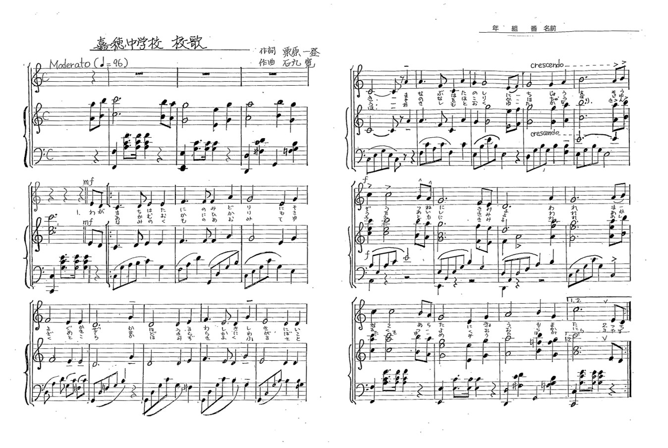 PDFファイルで校歌を開く